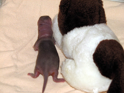Care to take a guess at what this is? Anyone?! It's a squirrel of the flying variety!! We got in 3 of them from off-island after the tree they were in was cut down. Again, as with any being this tiny, we always hold our breath, hoping they will do well but expecting the worse. And, since we have never had flying squirrel babies in, it made it extra touch-and-go there for awhile. But thrive they have!